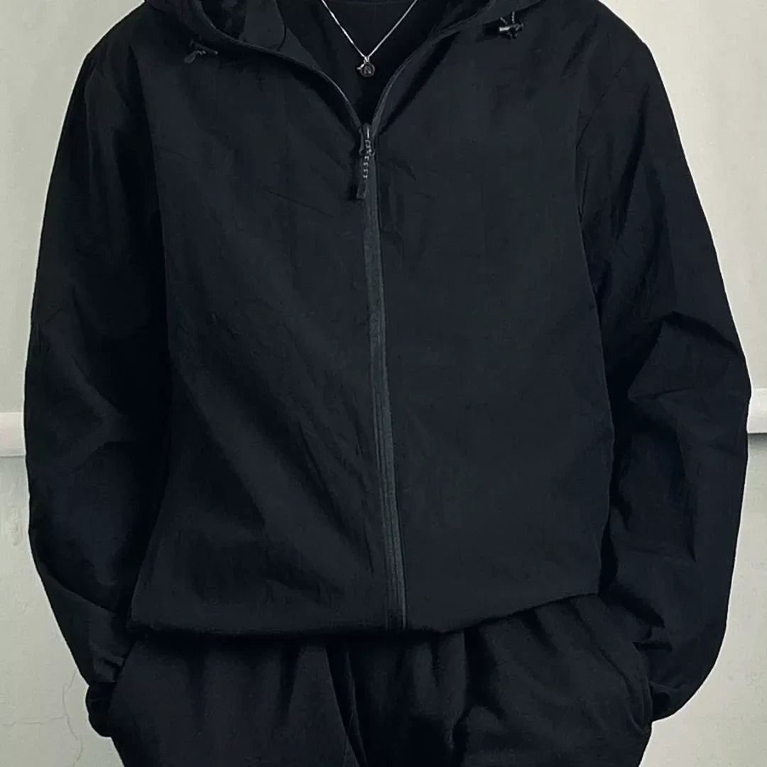 This Black Hooded Zip-Up Jacket is a versatile essential for any wardrobe. Its clean, minimalist design offers a sleek and understated look, making it easy to pair with a variety of outfits.