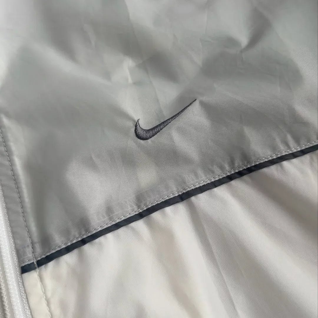 Stay stylish and protected from the elements with this Nike Color Block Windbreaker. Featuring a clean and modern design with distinct white and grey panels, this jacket offers a versatile look that's perfect for everyday wear. The lightweight fabric provides comfortable coverage without feeling bulky, making it ideal for layering or wearing on its own during transitional weather.